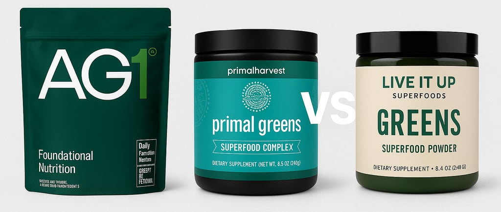 Greens powders can be a useful daily habit to fill nutrient gaps, support gut function and provide antioxidants. AG1 currently leads the pack on public clinical evidence for a branded greens product (RCT data showing gut and QoL changes in ~4 weeks). Primal Harvest and Live It Up are sensible lower-cost and taste-focused alternatives, respectively, but rely more on ingredient-level evidence and consumer reports. For safety and long-term value, pick brands with transparent third-party testing, avoid expecting a miracle, and prioritize solid lifestyle foundations (sleep, whole foods, exercise) first.
